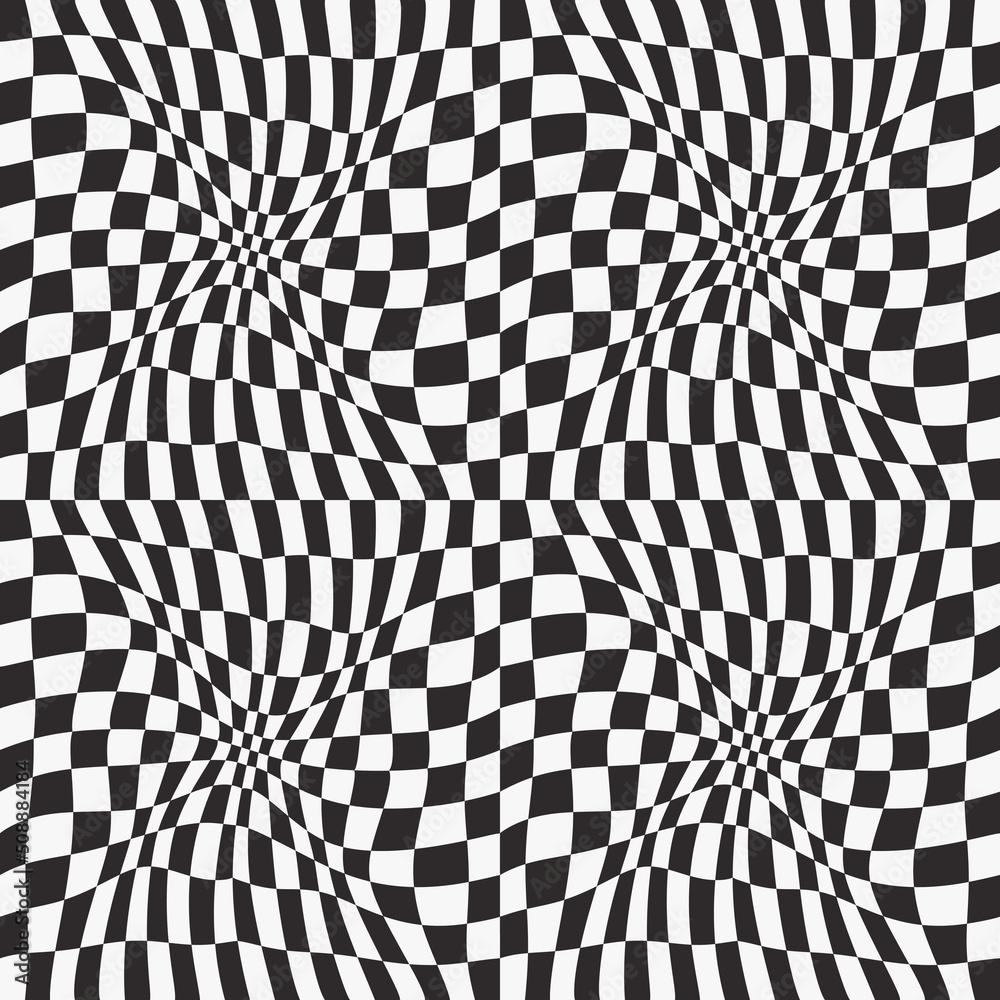 Checkered pattern is curved. Vector curved and crooked optical ...