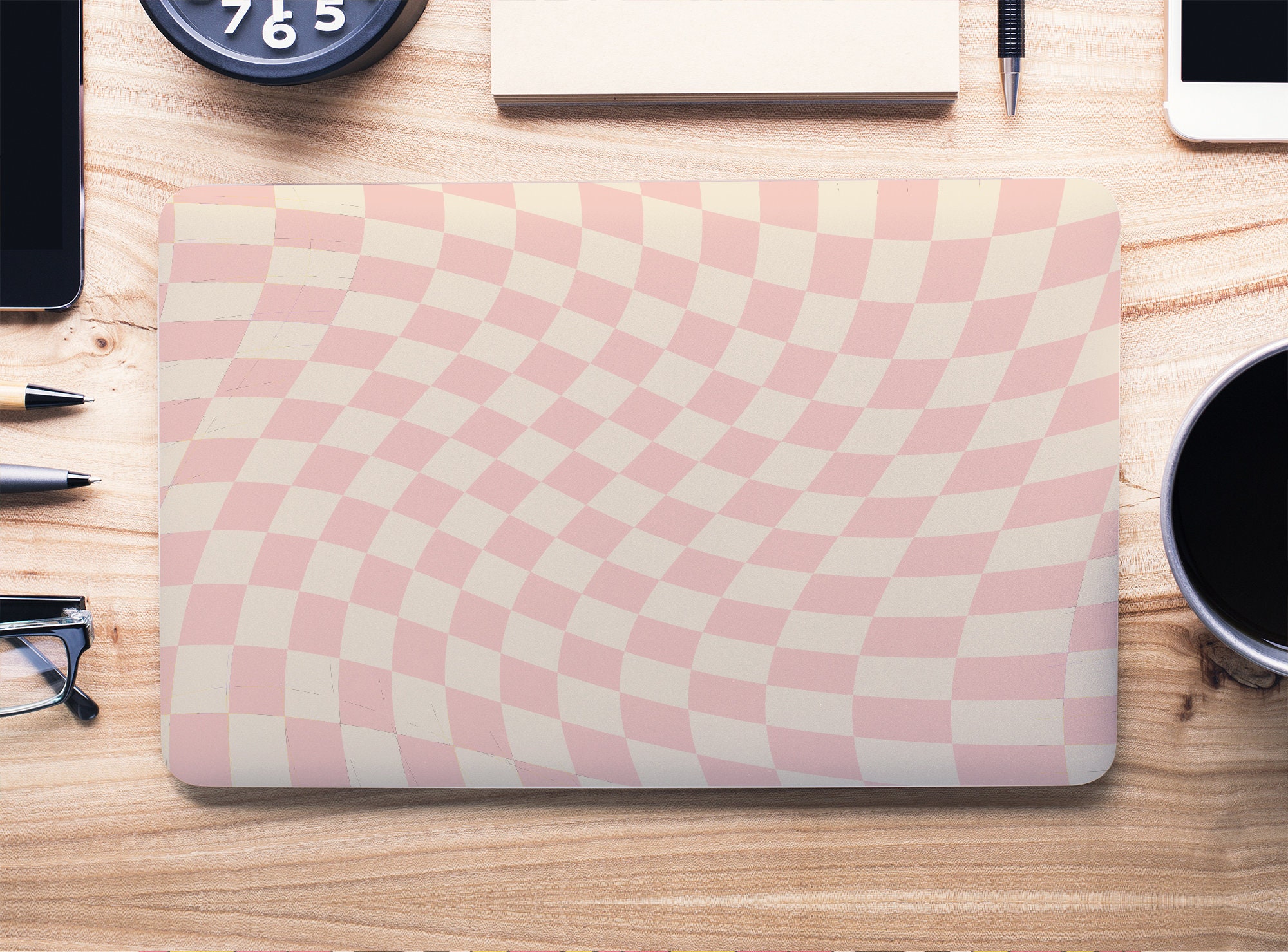 Pink & White Stretched Checkerboard Pattern UNIVERSAL Laptop Skin ...