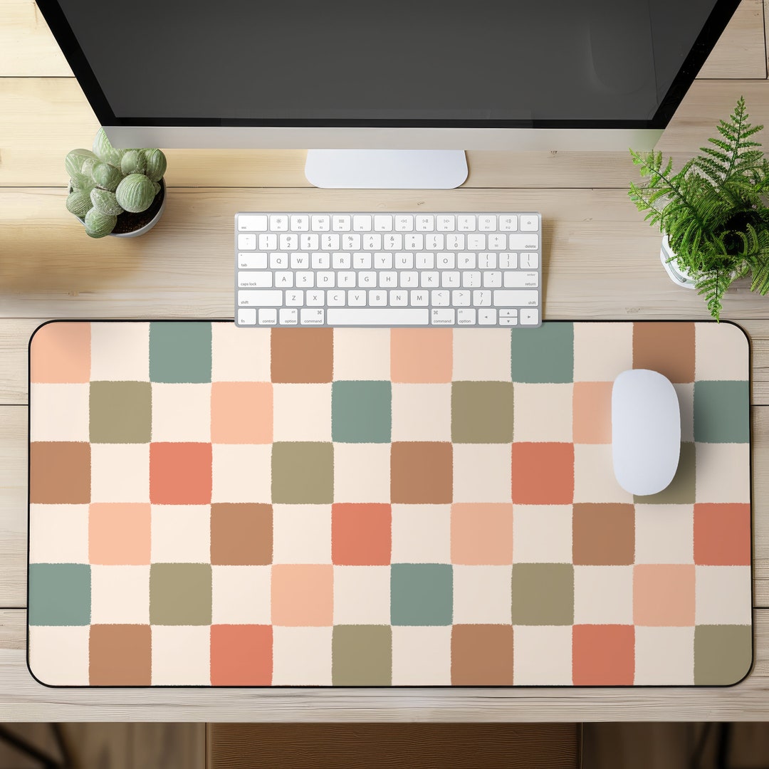Boho Checkerboard Desk Mat: Anti-slip Neoprene Computer Deskpad - Etsy