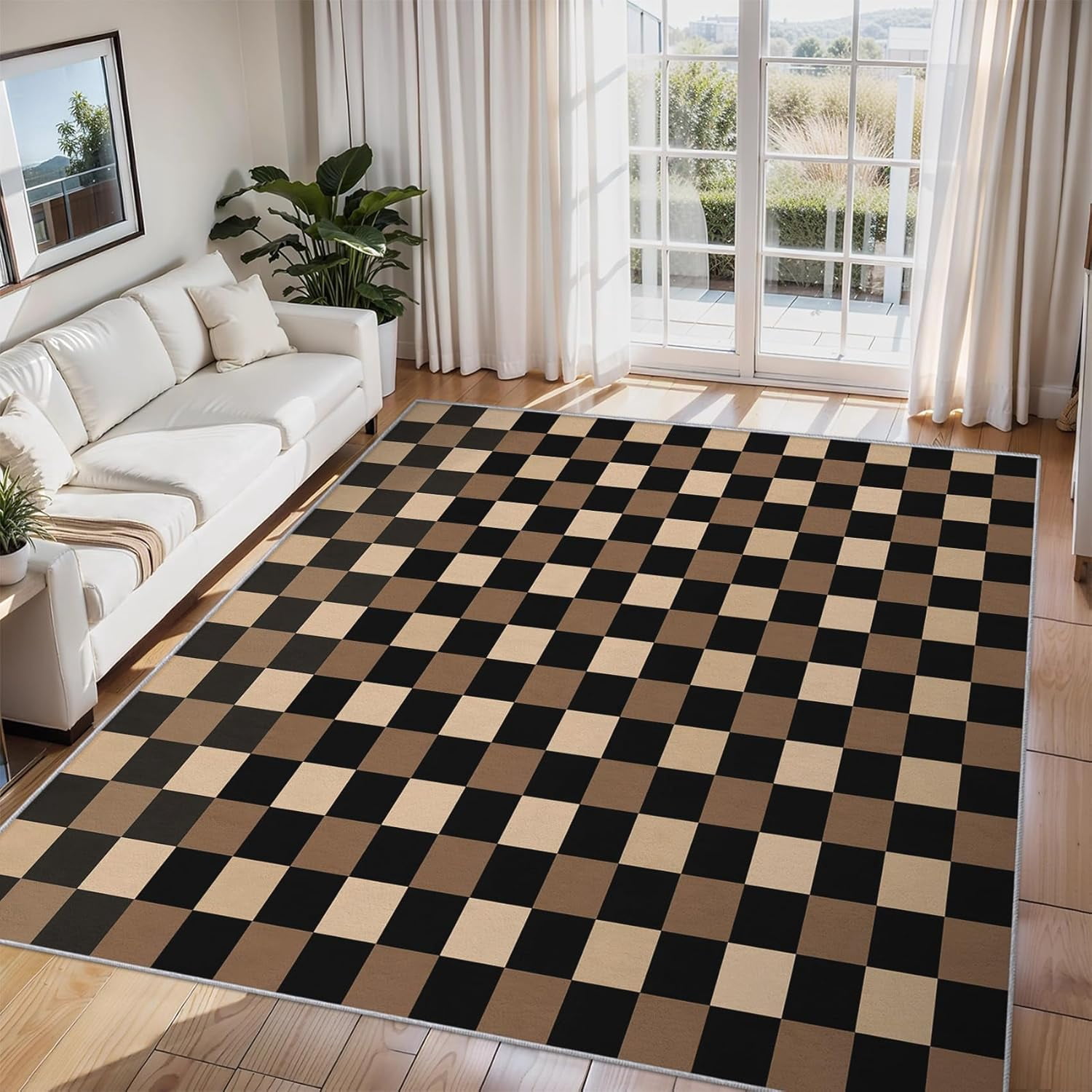 Checkerboard Area Rug Brown Black Plaid Pattern Carpet Washable Non ...
