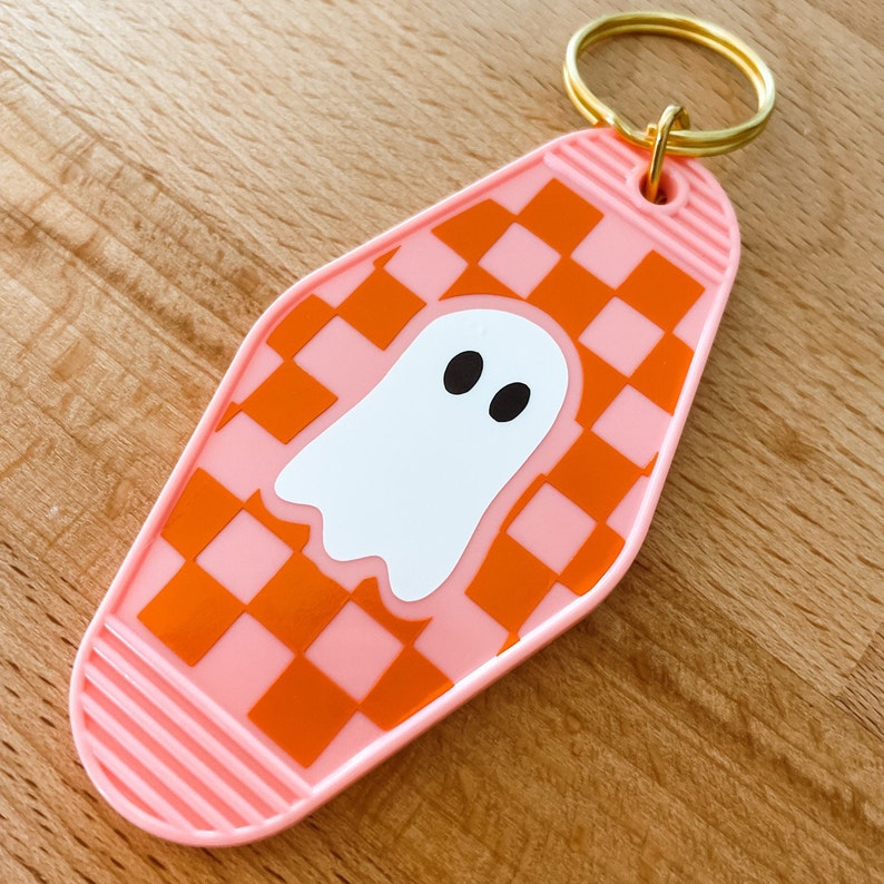 Checkered Ghost Retro Motel Keychain - Pink With Orange Checkerboard ...