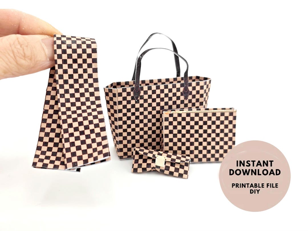 1:6 Luxury Brown Checker Board Pattern Tote, Purse and Scarf for ...