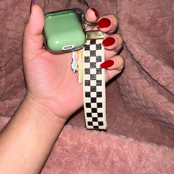 Checker Keychain Wristlet/keychain Wristlet Fobs/checkerboard Keychain ...