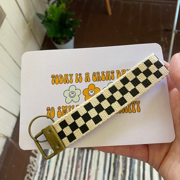 Black Checkered Key Fob | Mini Checker Wristlet | Keychains - Etsy
