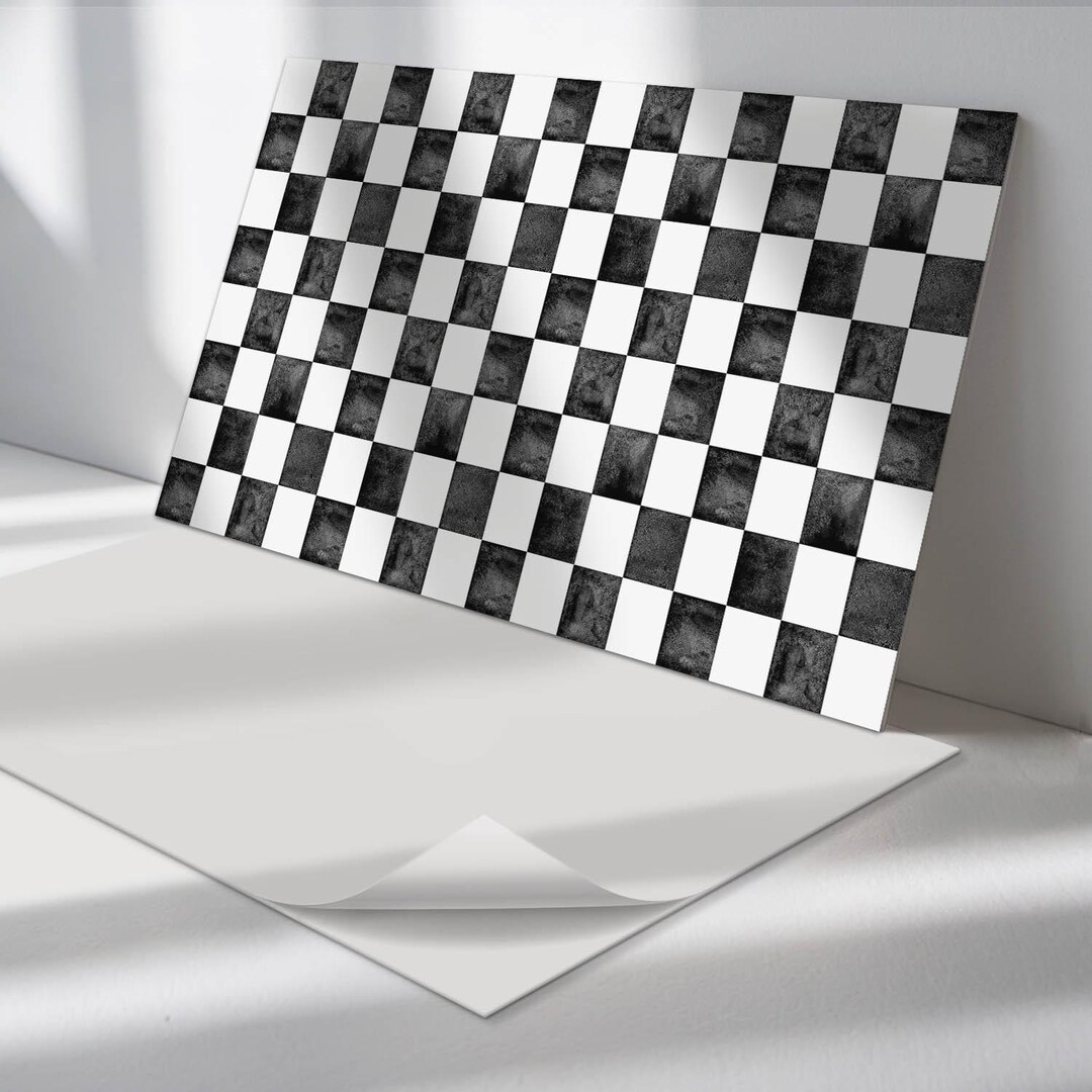 Checkerboard Pattern With Texture Panel Stickers, Black Self Adhesive ...