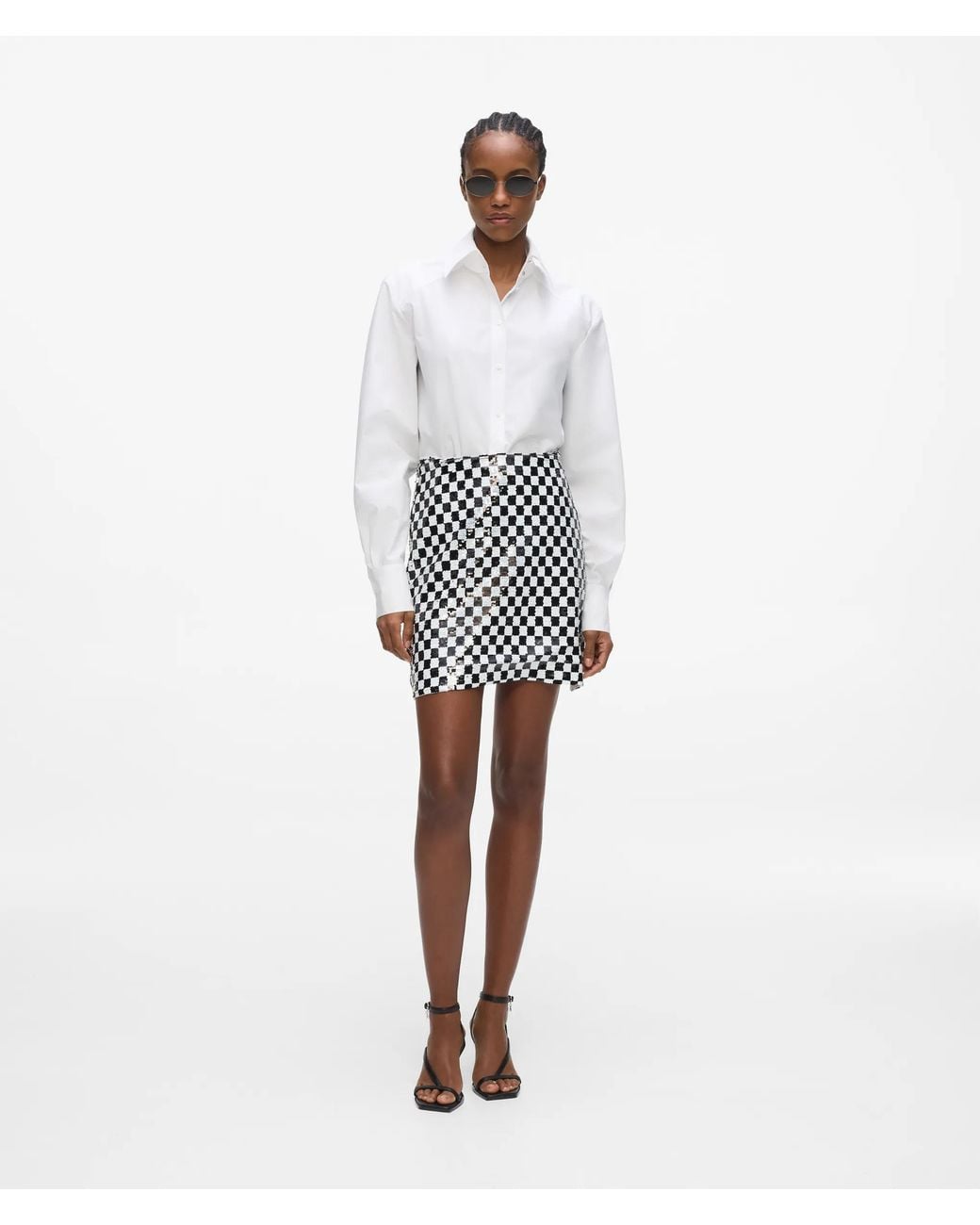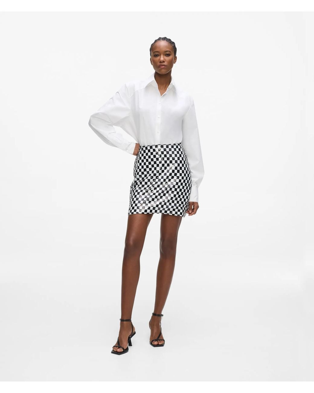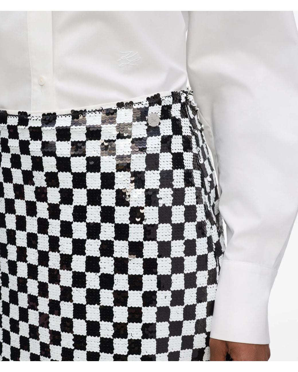 KARL LAGERFELD Checkerboard Sequin Mini Skirt in White | Lyst UK