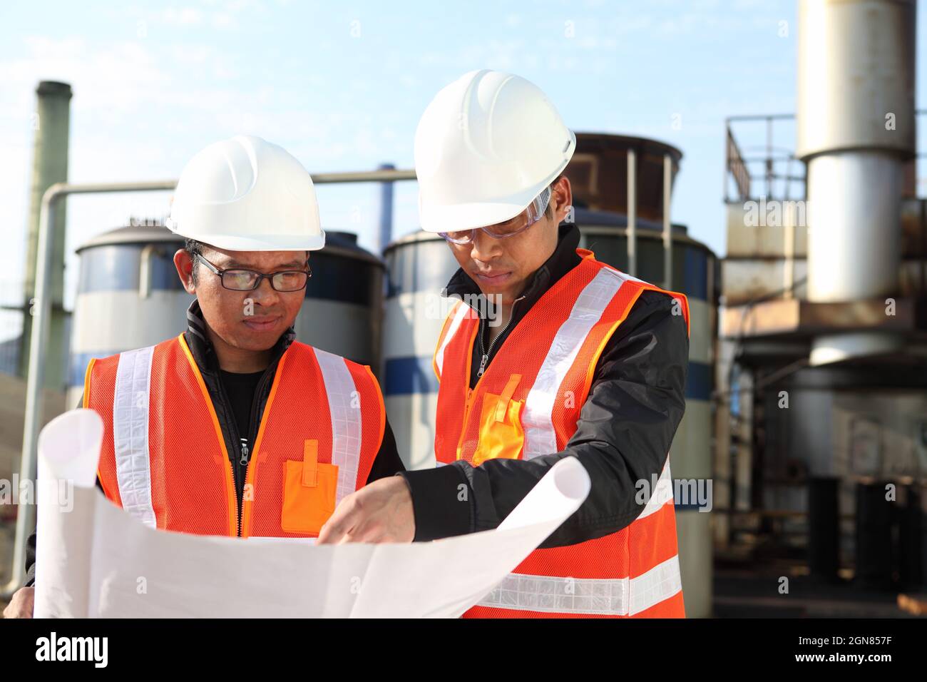 Engineer checking drawings on rooftop Stock Photo | Adobe Stock