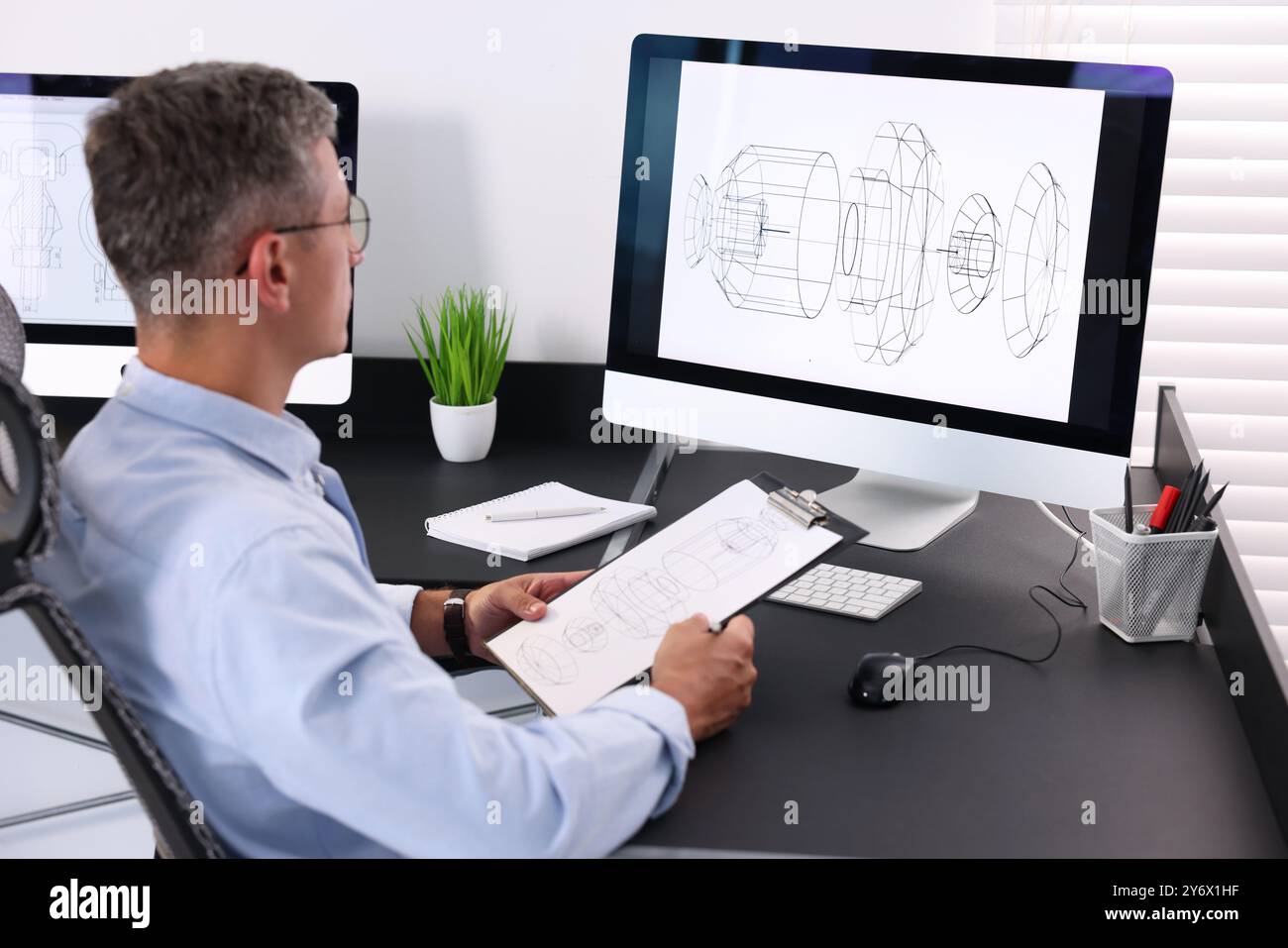 portrait of mechanical engineering checking drawing Stock Photo - Alamy
