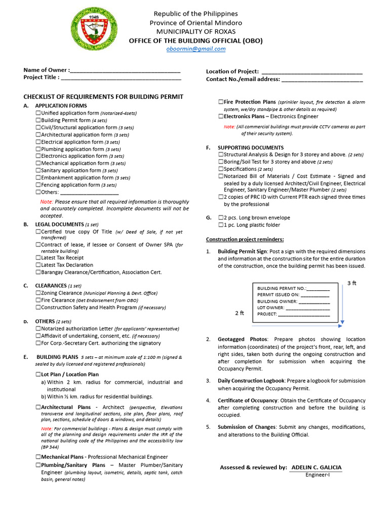 OBO - Building Permit Checklist | PDF | Notary Public