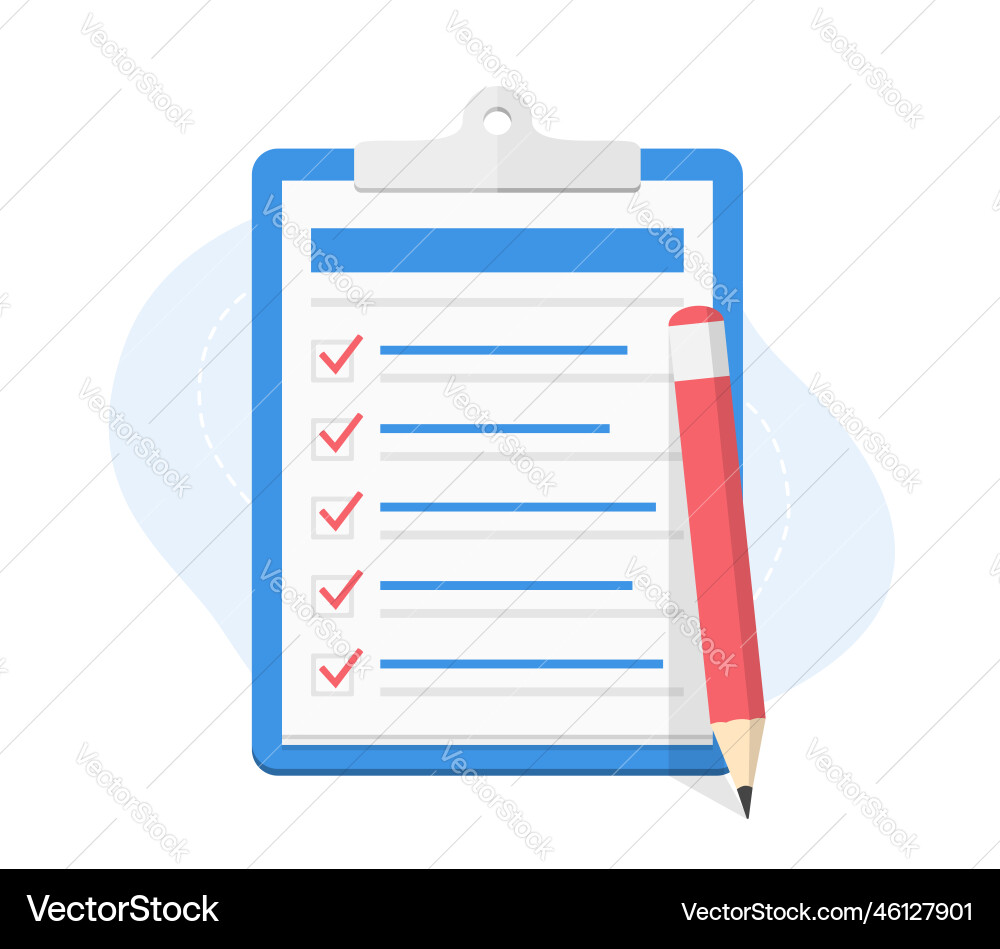 Red Pencil Checklist Paper Royalty Free Vector Image