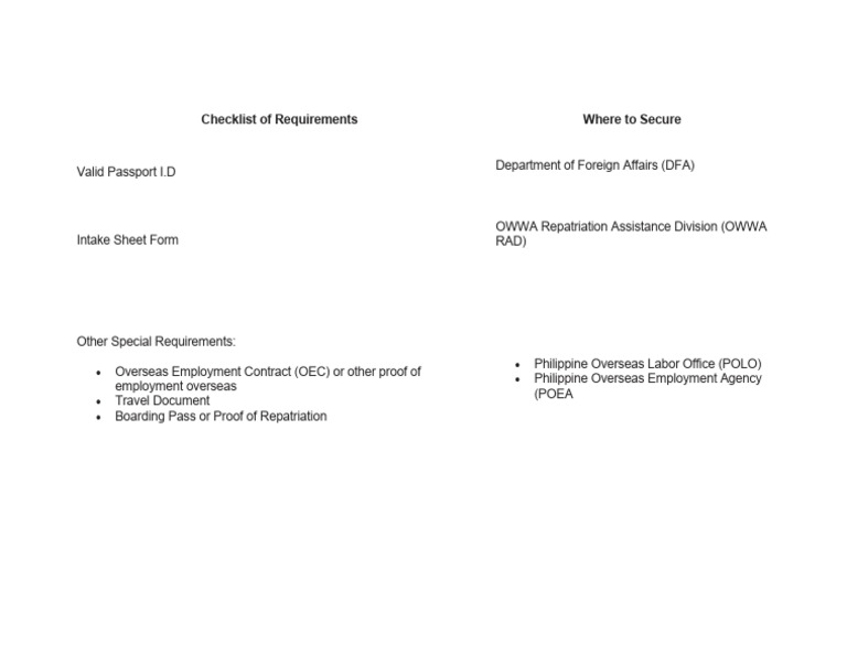 Repatriation Checklist for OFWs | PDF