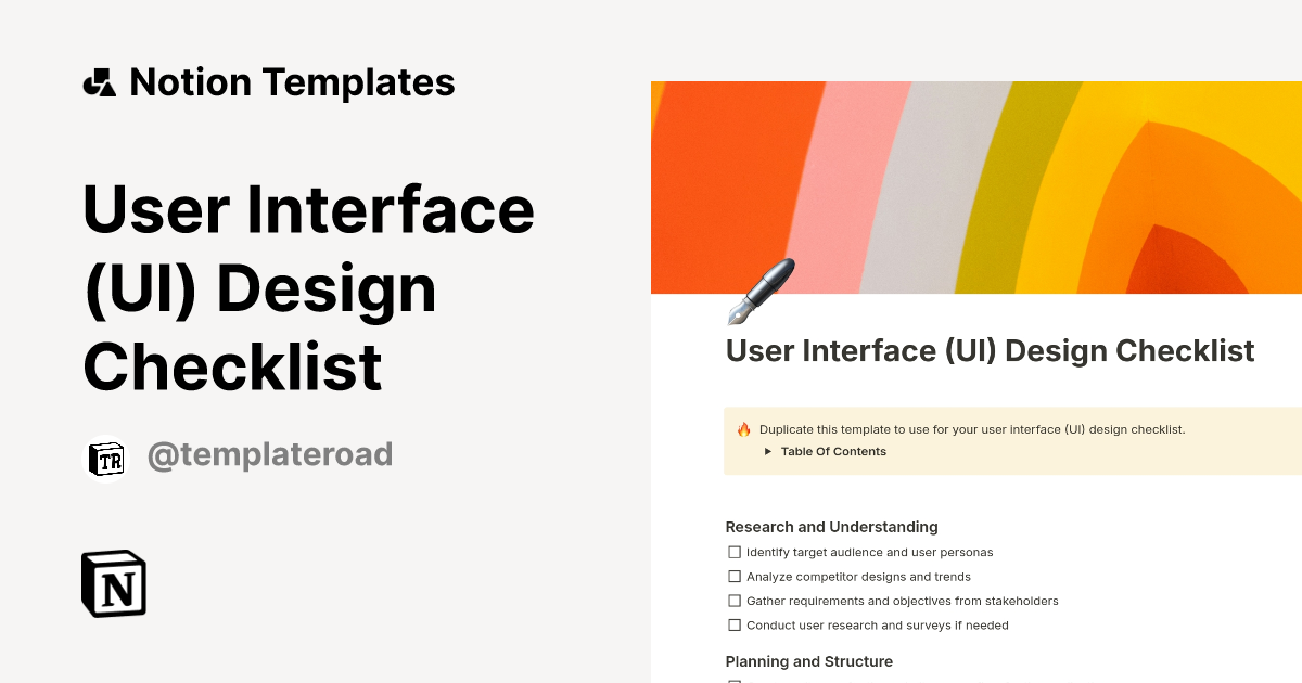 User Interface (UI) Design Checklist Template | Notion Marketplace