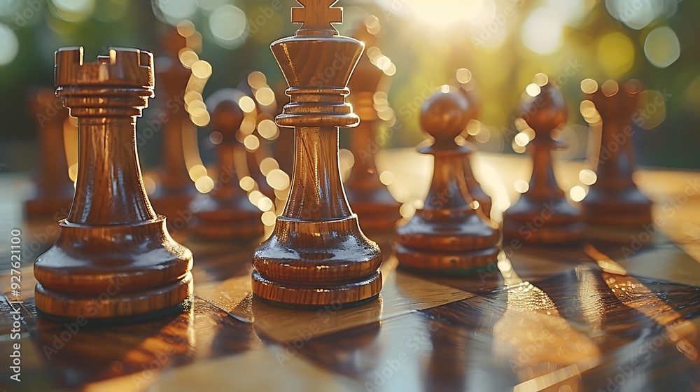 A chessboard captured in natural daylight, with the final checkmate ...