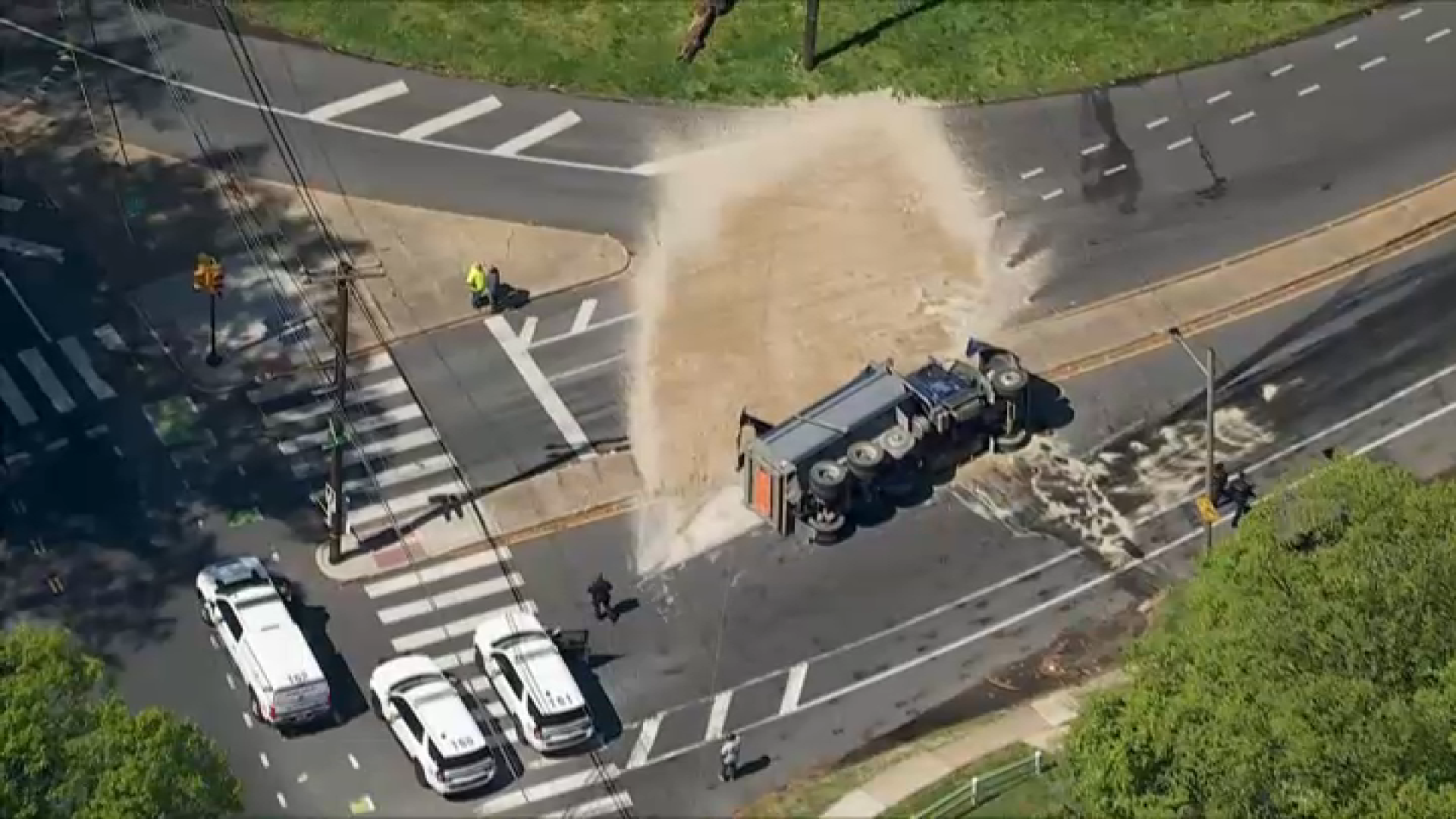 Dump truck overturns on Philadelphia road, leaving debris everywhere ...