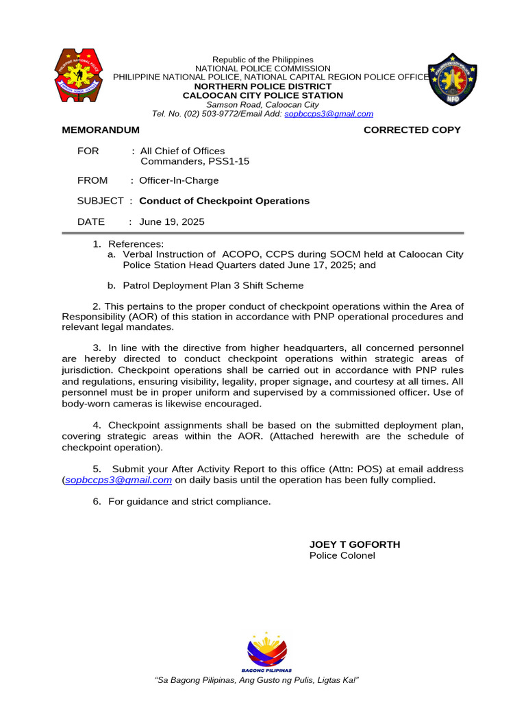 Conduct of Checkpoint Operations JUNE 20, 2025 LOWER | PDF | Law ...