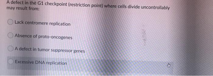 Solved A defect in the G1 checkpoint (restriction point) | Chegg.com