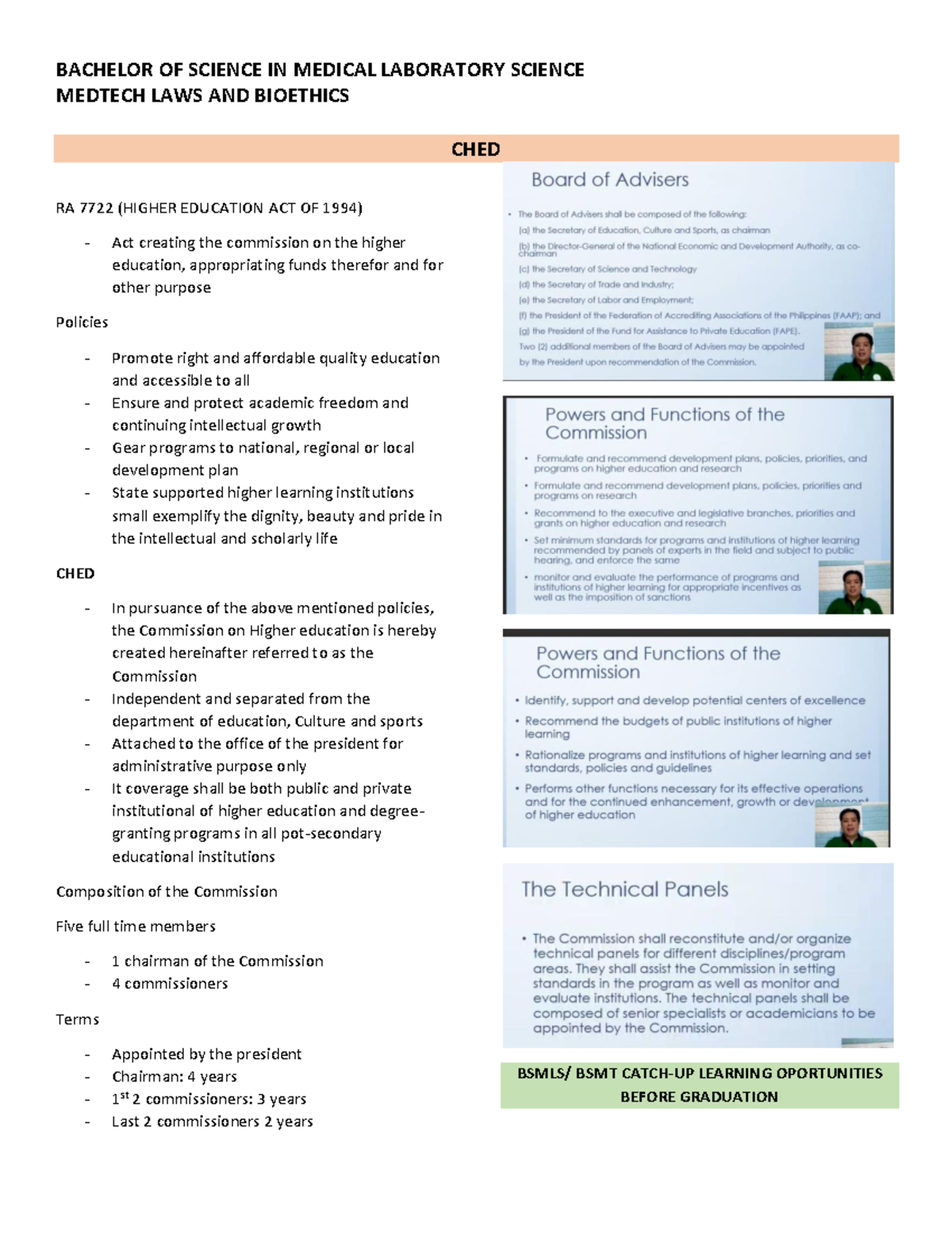 CHED - Summary Medical Laboratory Science - BACHELOR OF SCIENCE IN ...