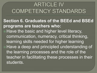 CHED Program Outcomes Common TO ALL Teacher Education Programs - CHED ...