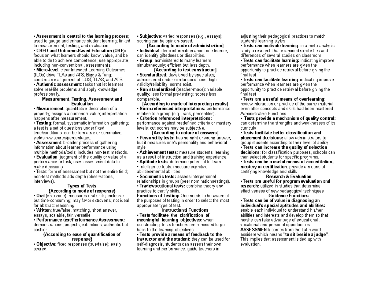Assessment and Learning: A Comprehensive Review for CHED OBE - Studocu
