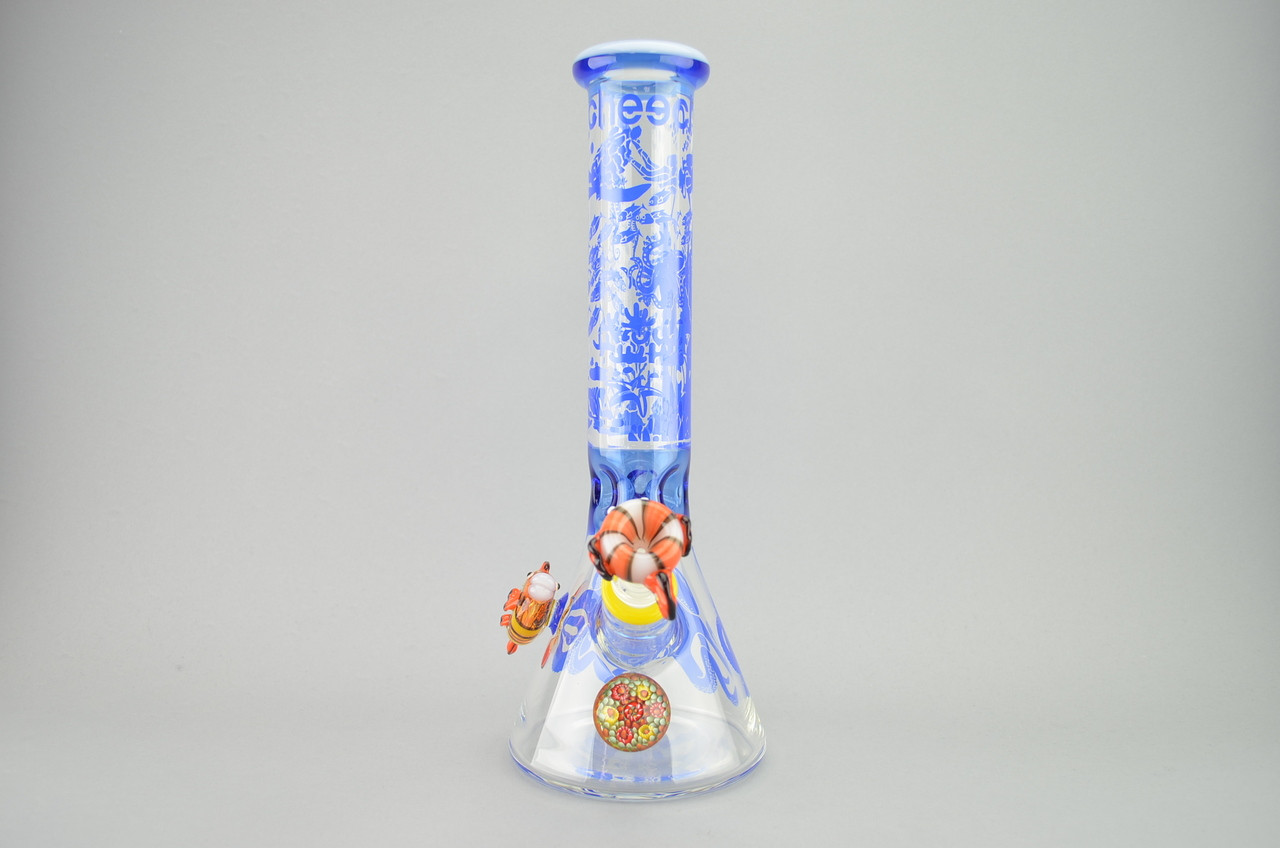 CHEECH - Ocean Themed Glass Beaker Bong w/ Removable Downstem & 14mm ...