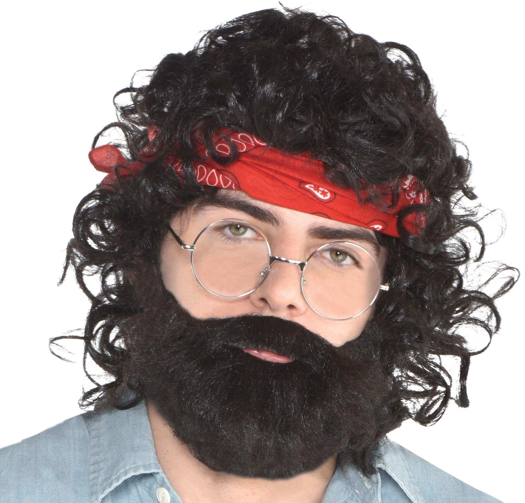 Up in Smoke Cheech Kit with Beanie, Mustache & Long Curly Hair Wig, Red ...