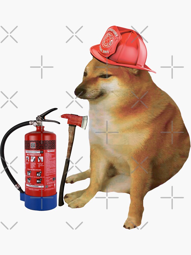 "Firefighter Cheems" Sticker for Sale by SciathDe | Redbubble