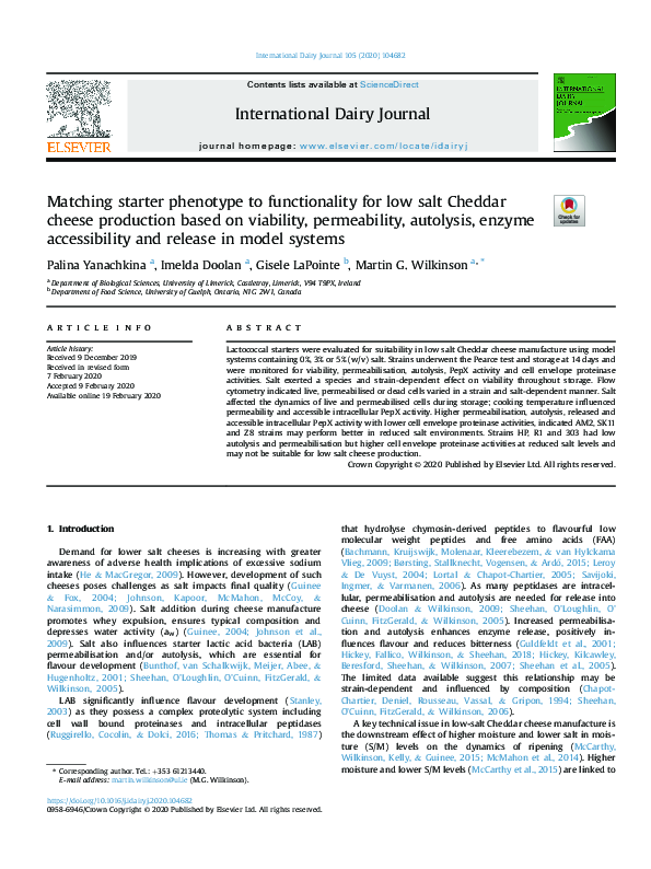 (PDF) Matching starter phenotype to functionality for low salt Cheddar ...