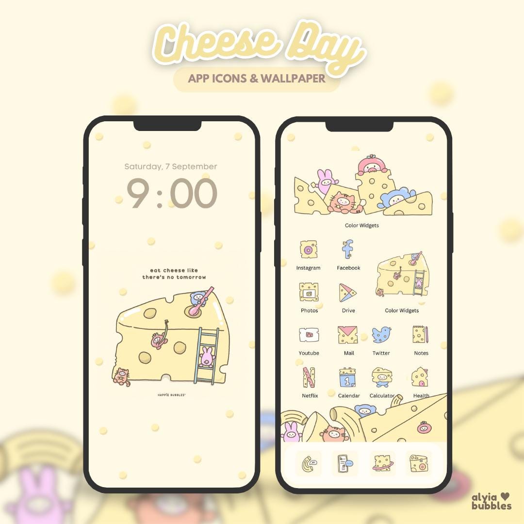 Cheese Day Ios Android Purple App Icons Cute Custom Phone - Etsy in ...