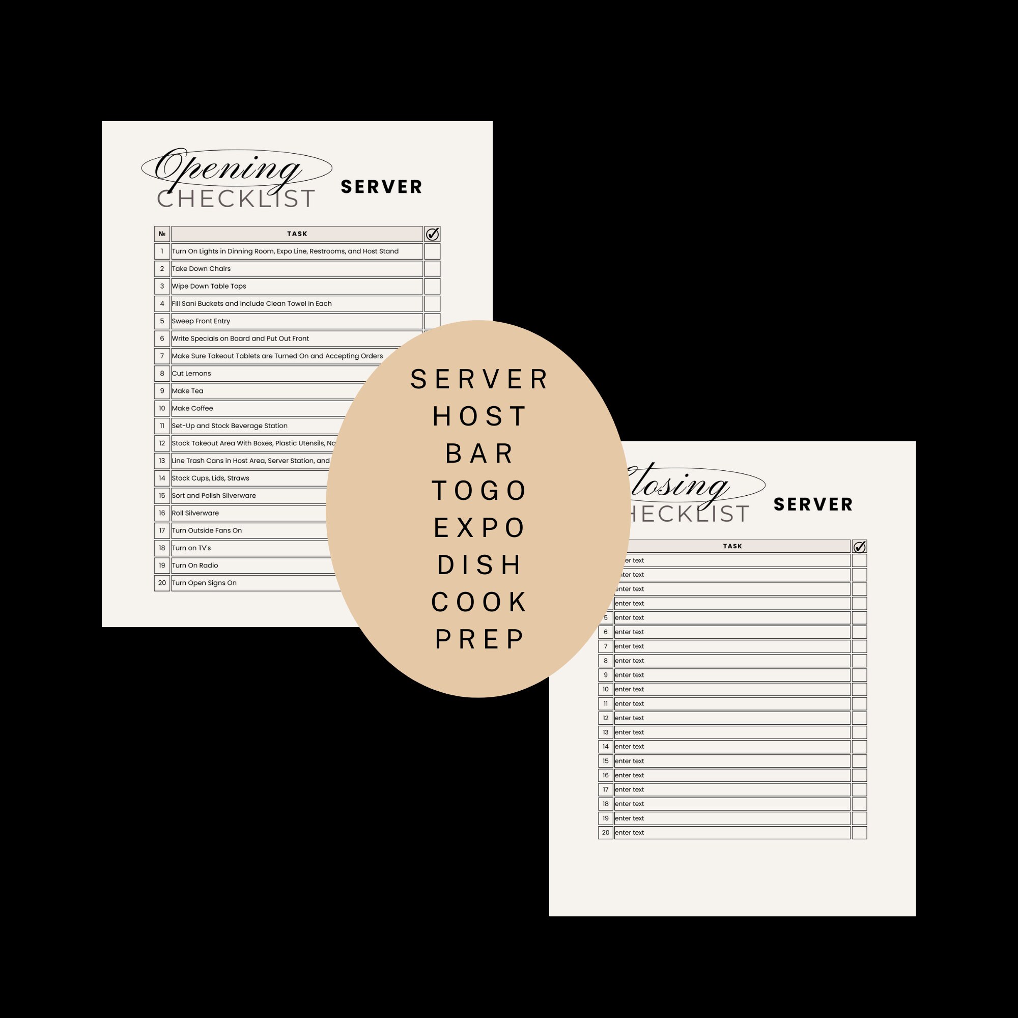 Restaurant Employee Checklist for Opening & Closing Tasks. - Etsy