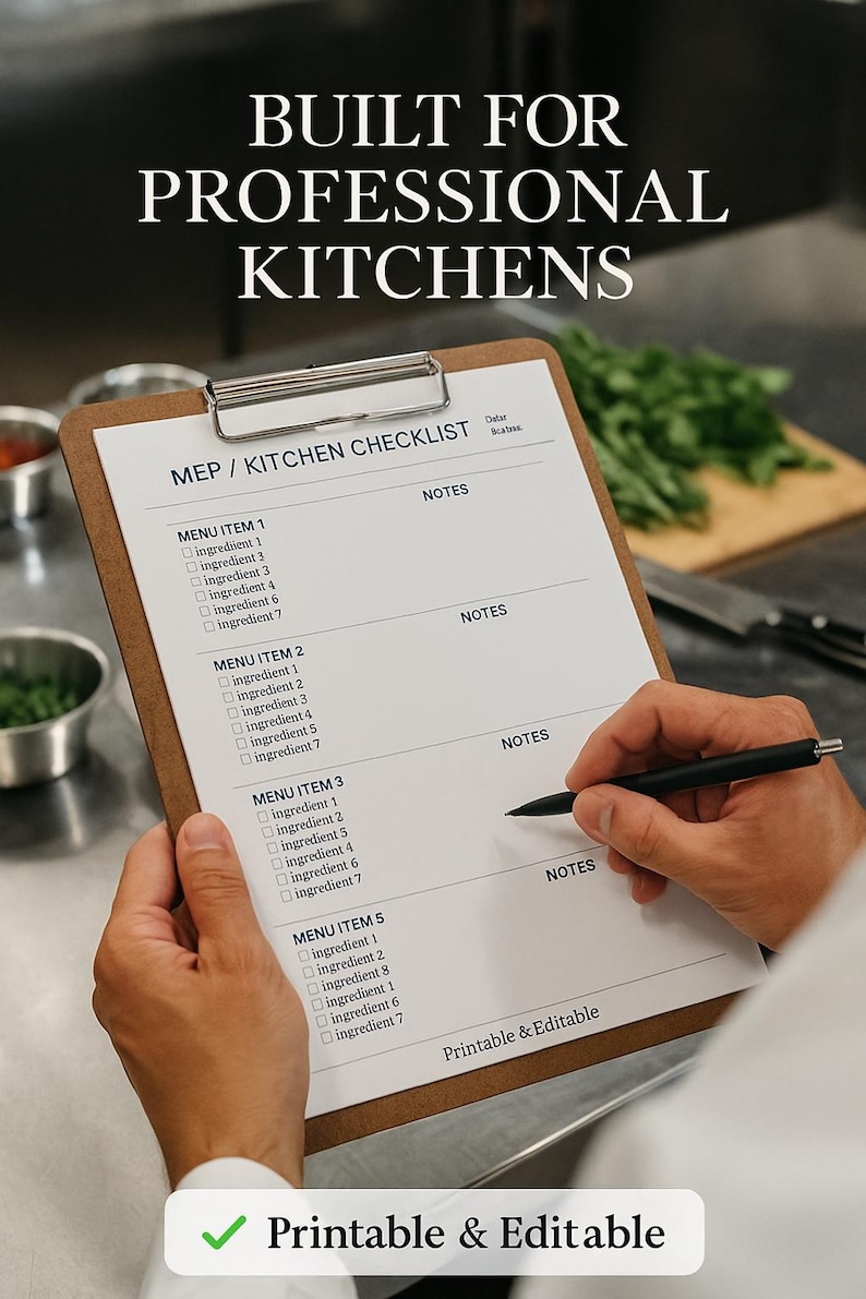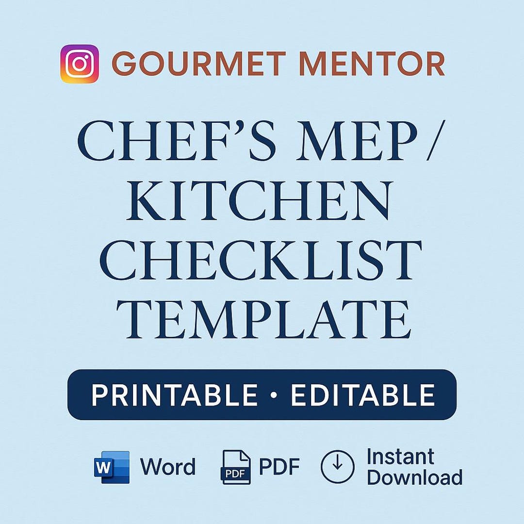 Chef Checklist Printable | Editable MEP Planner | Professional Kitchen ...