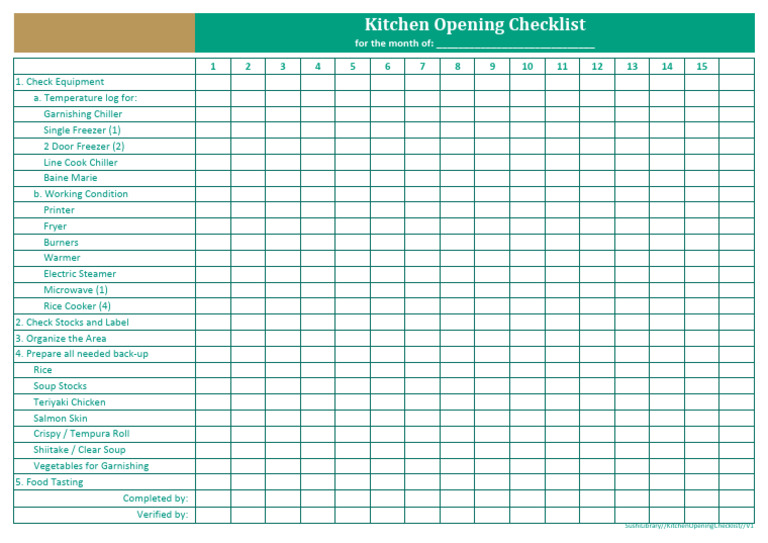 Sample Of Kitchen Checklist at William Ashbolt blog