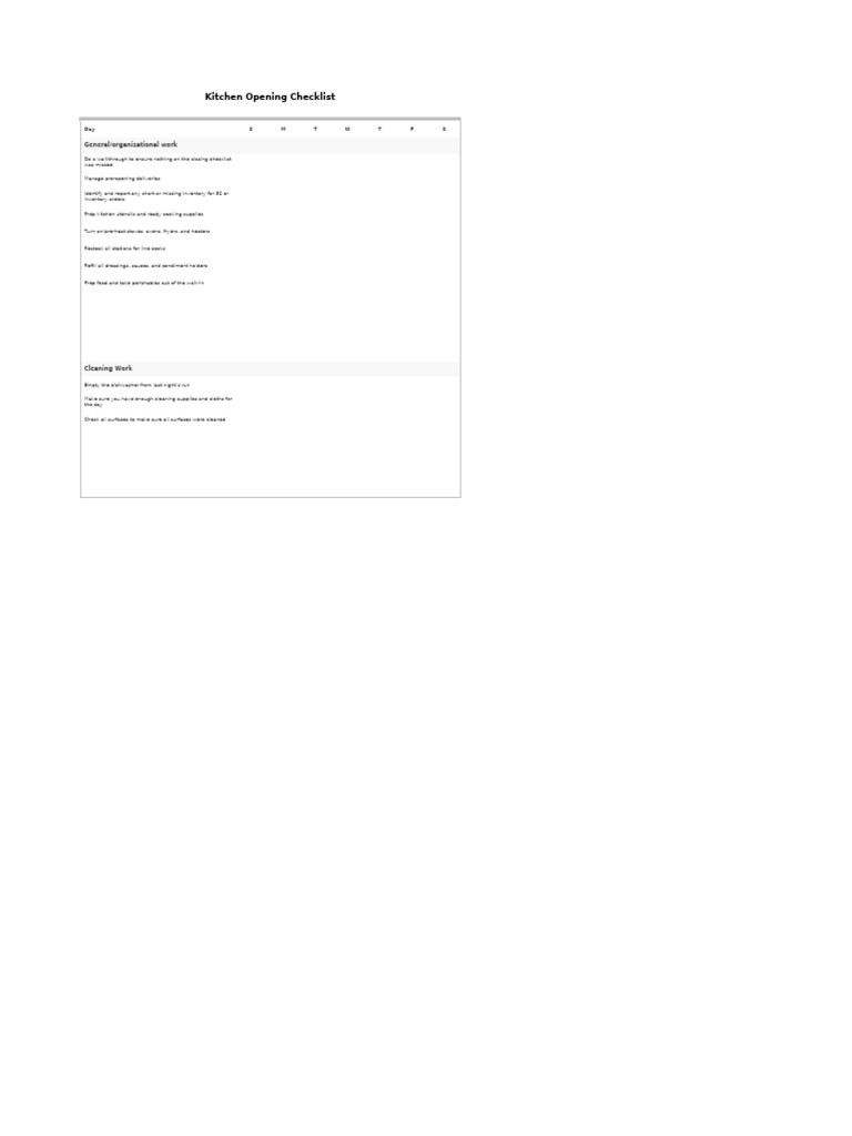 BOH Opening Checklist, Kitchen Opening Checklist Template, Editable ...