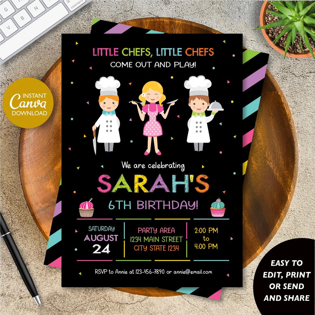 Editable Chef Girls Birthday Invitation Baking Invitation - Etsy