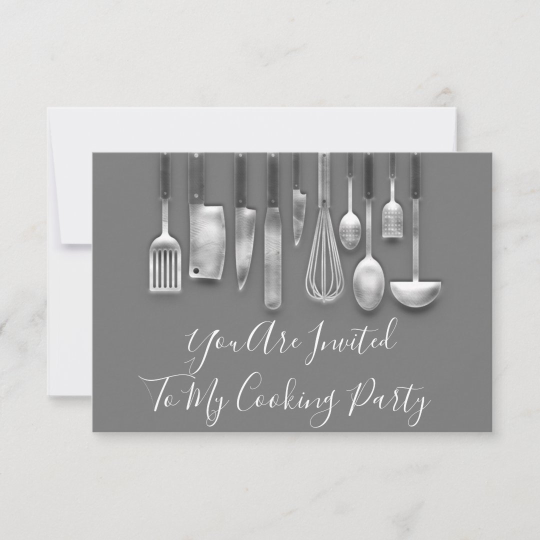 Cooking Party Chef Kitchen White Gray Silver Invitation | Zazzle