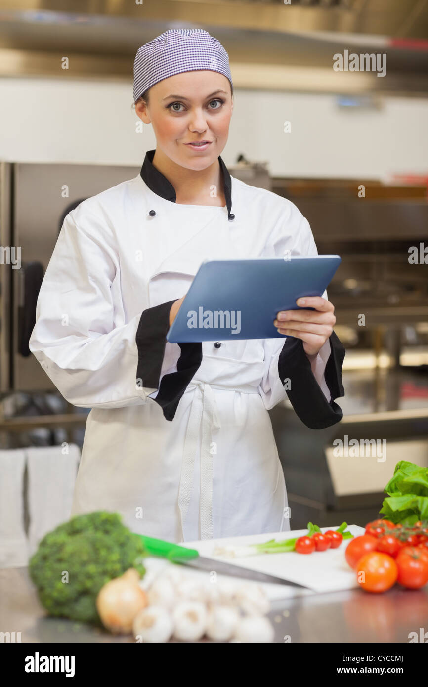 Female chef using digital tablet in the kitchen Stock Photo - Alamy
