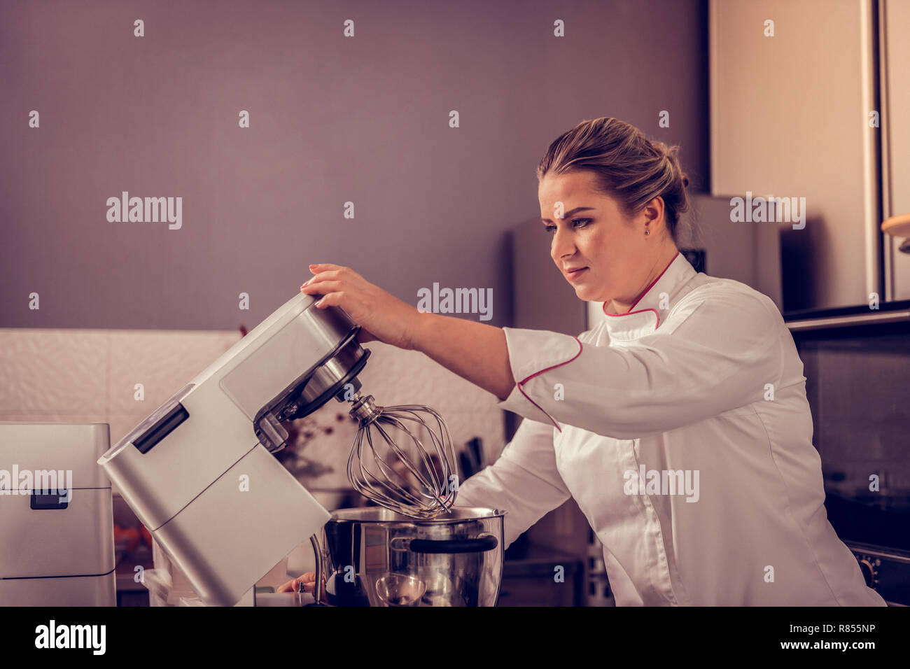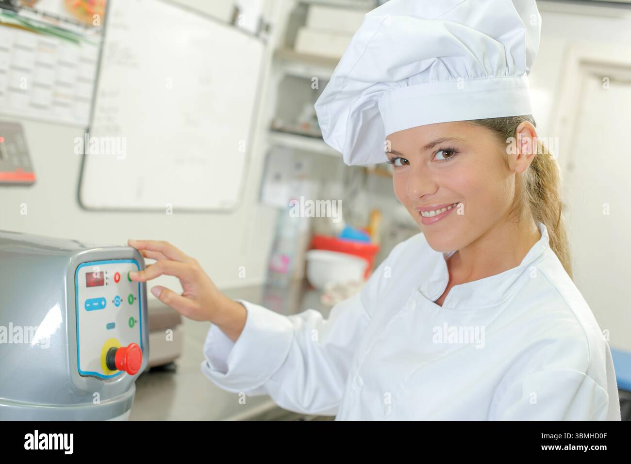 Female chef using kneading machine in kitchen Stock Photo - Alamy