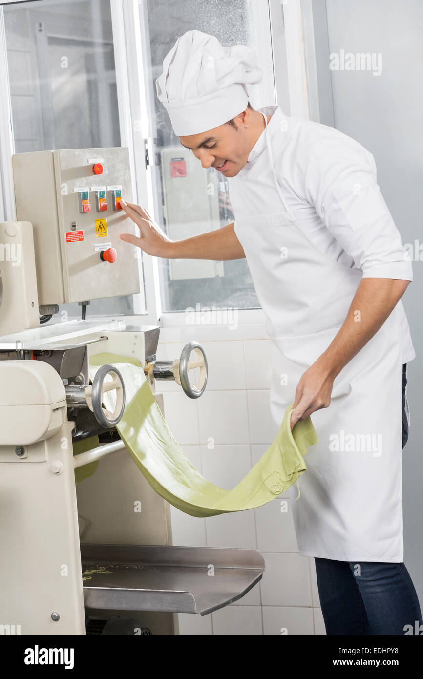 Chef Operating Spaghetti Pasta Machine At Kitchen Stock Photo - Alamy