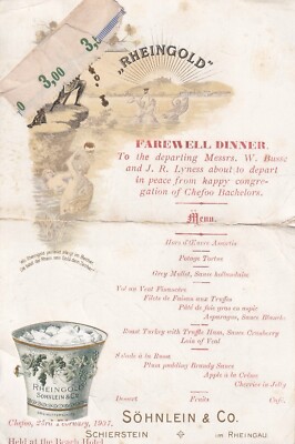 Menükarte / Speisekarte - Farewell Dinner China Chefoo / Tschifu - 1907 ...