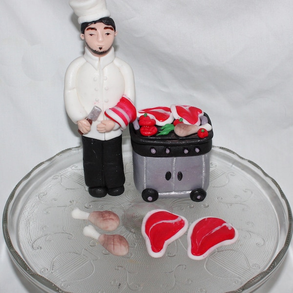 Fondant Grilling Chef Cake Topper, Chef Birthday, Culinary Graduation ...