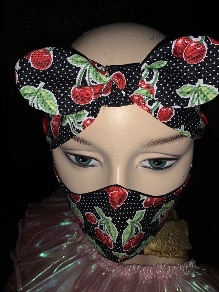 Cherry Headband Face Mask Reusable Pinup Retro Vintage Rockabilly Boho ...