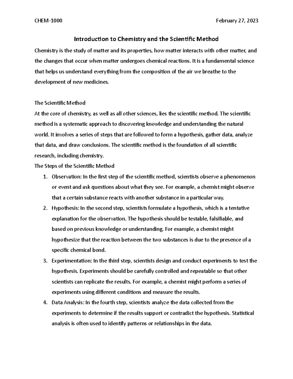 Introduction to Chemistry and the Scientific Method - CHEM-1000 ...