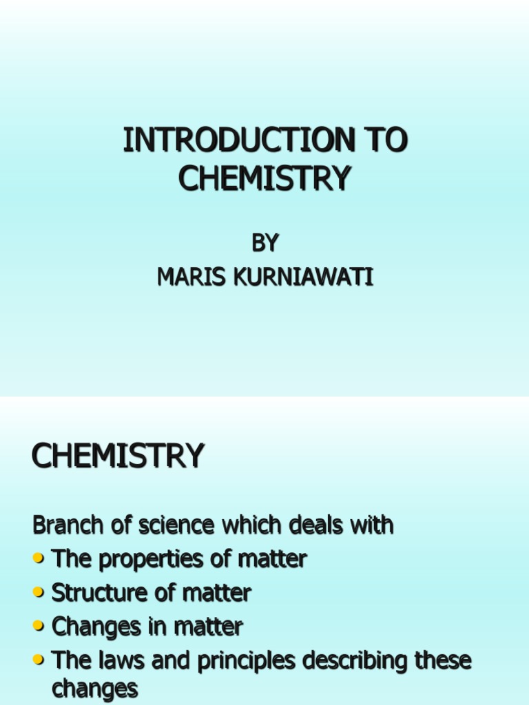 Introduction OF Chemistry (Autosaved) - INTRODUCTION TO CHEMISTRY ...