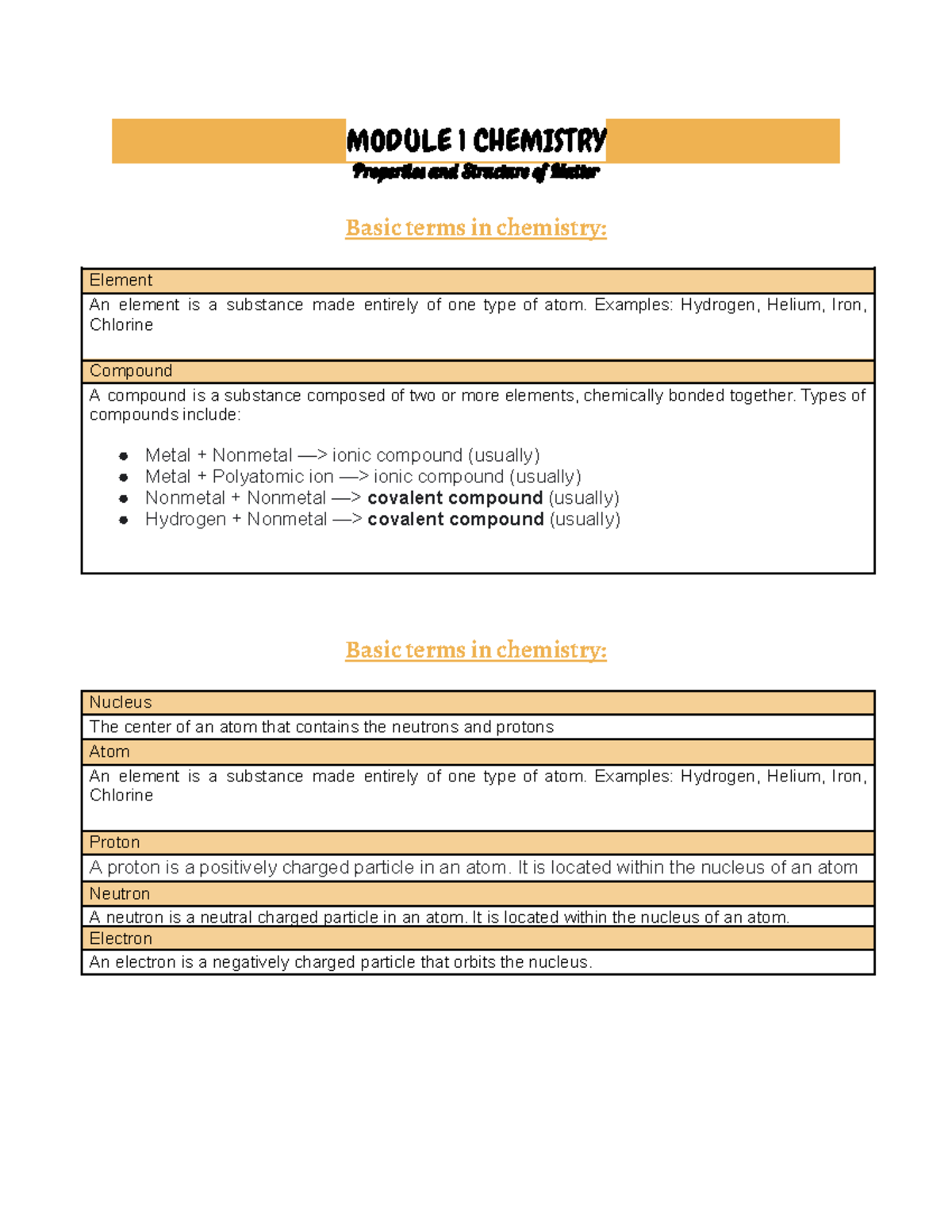 Comprehensive Chemistry Module 1 Study Guide | Course Hero