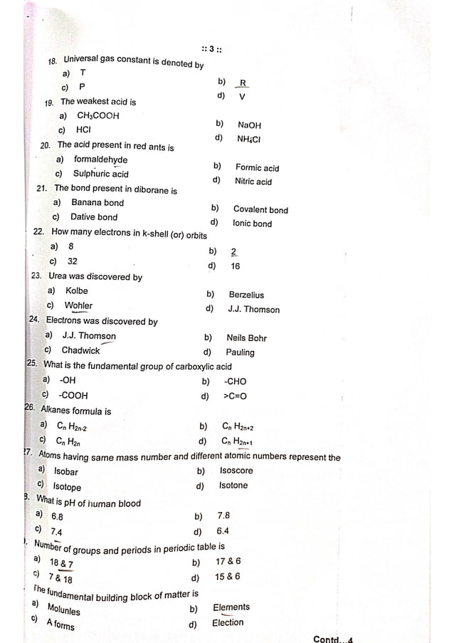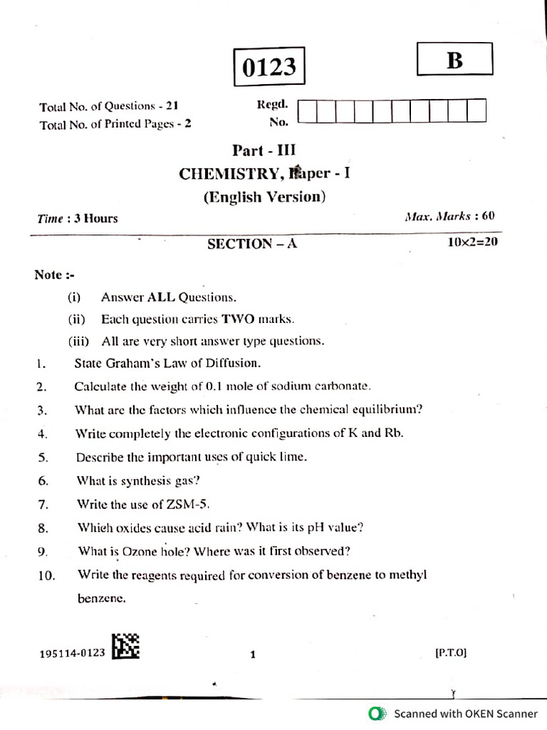 DA 122 ENGLISH MEDIUM BASIC CHEMISTRY MODEL PAPER | PDF