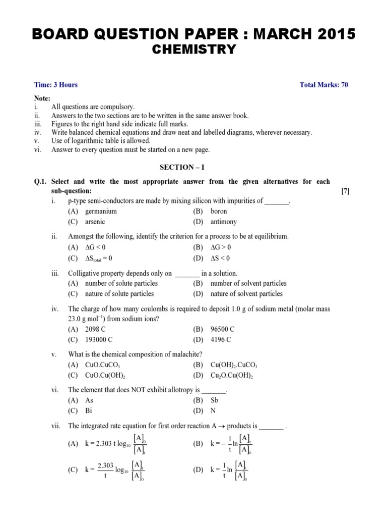 March 2015 Chemistry Board Exam Paper | PDF | Boron | Solution