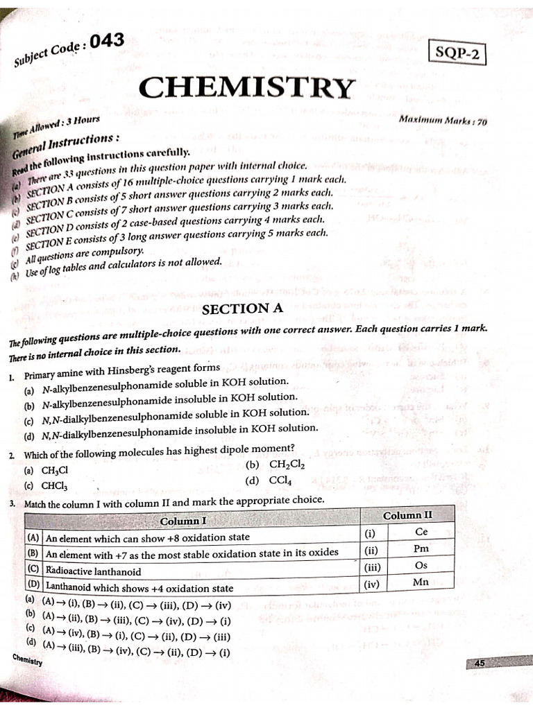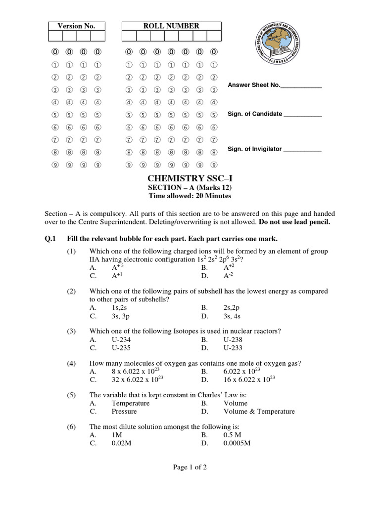 Chemistry Paper 1: Important Instructions and Question Breakdown ...