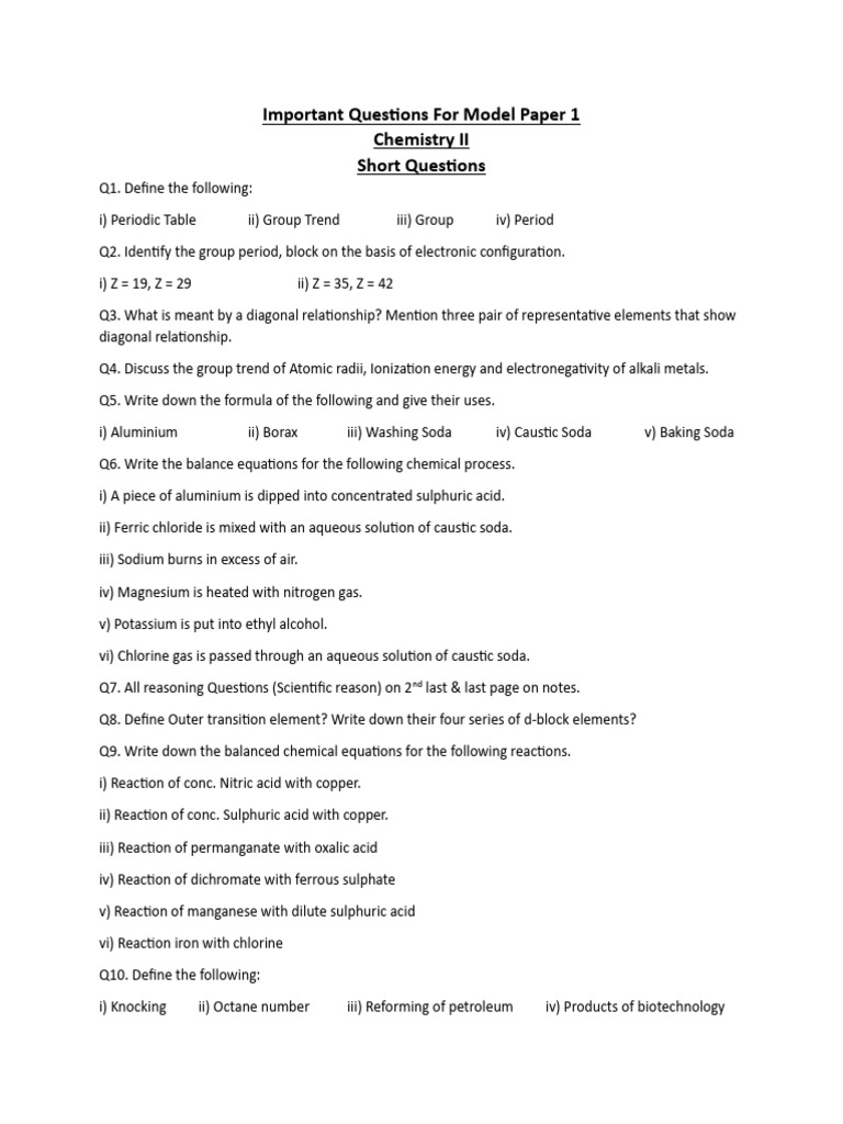 Chemistry Model Papers 2025 | PDF | Chemical Reactions | Acid