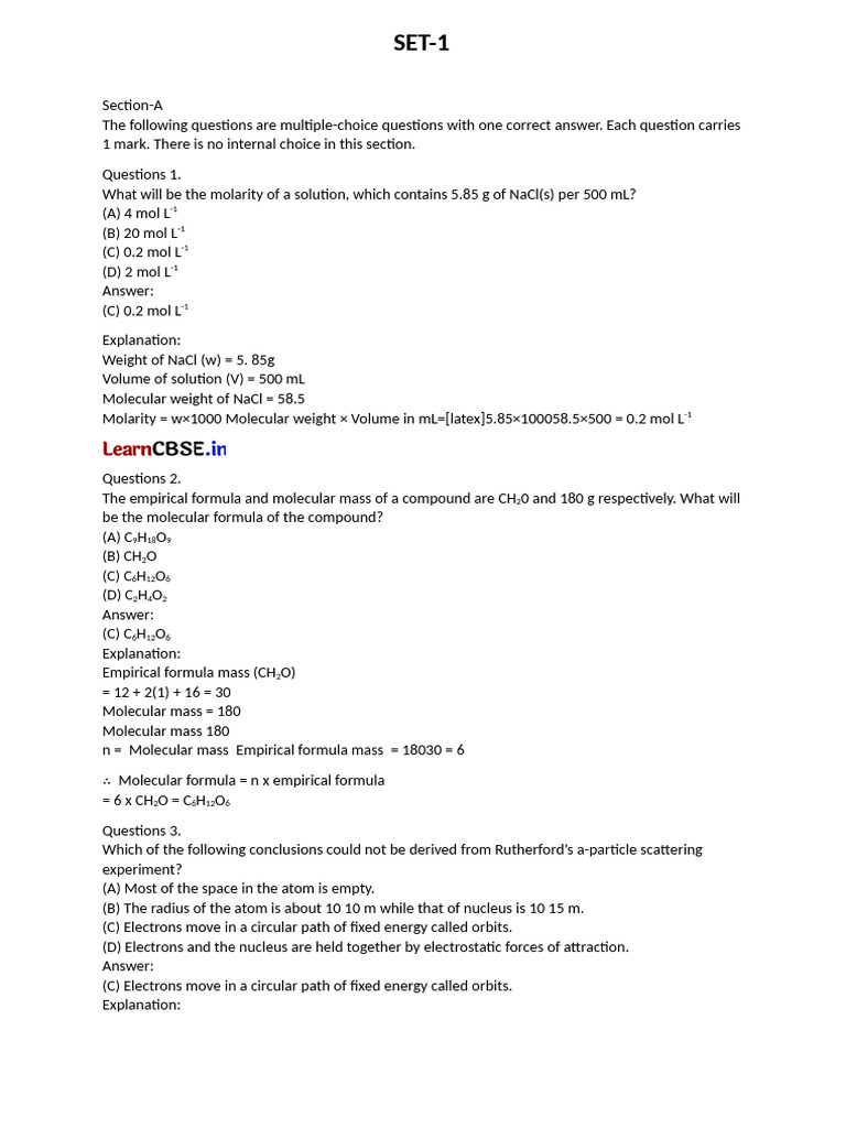 CBSE Sample Paper CHEMISTRY | PDF | Chemical Substances | Atoms