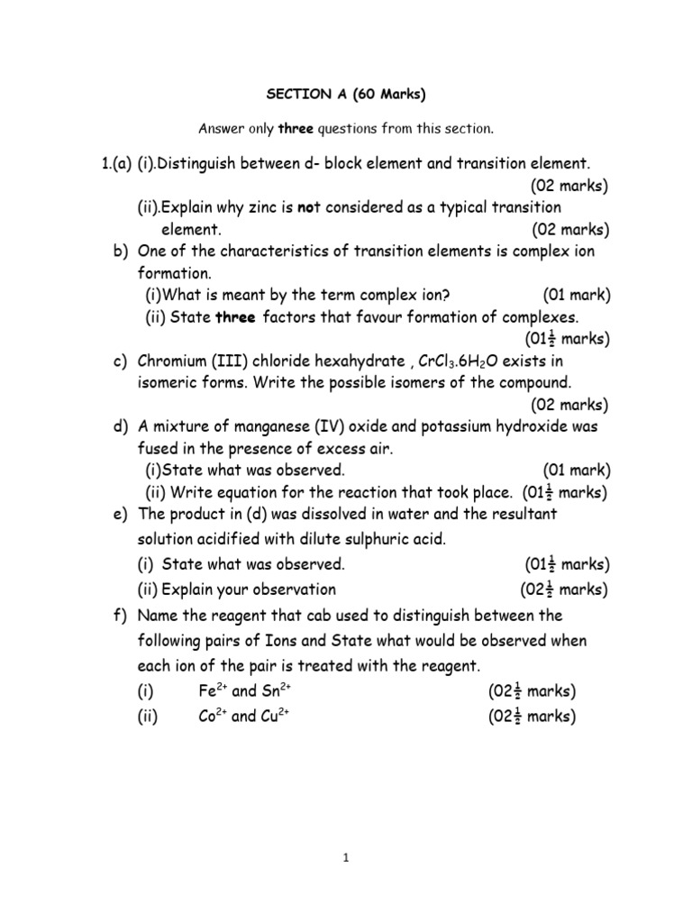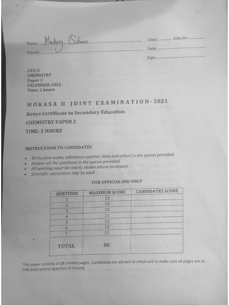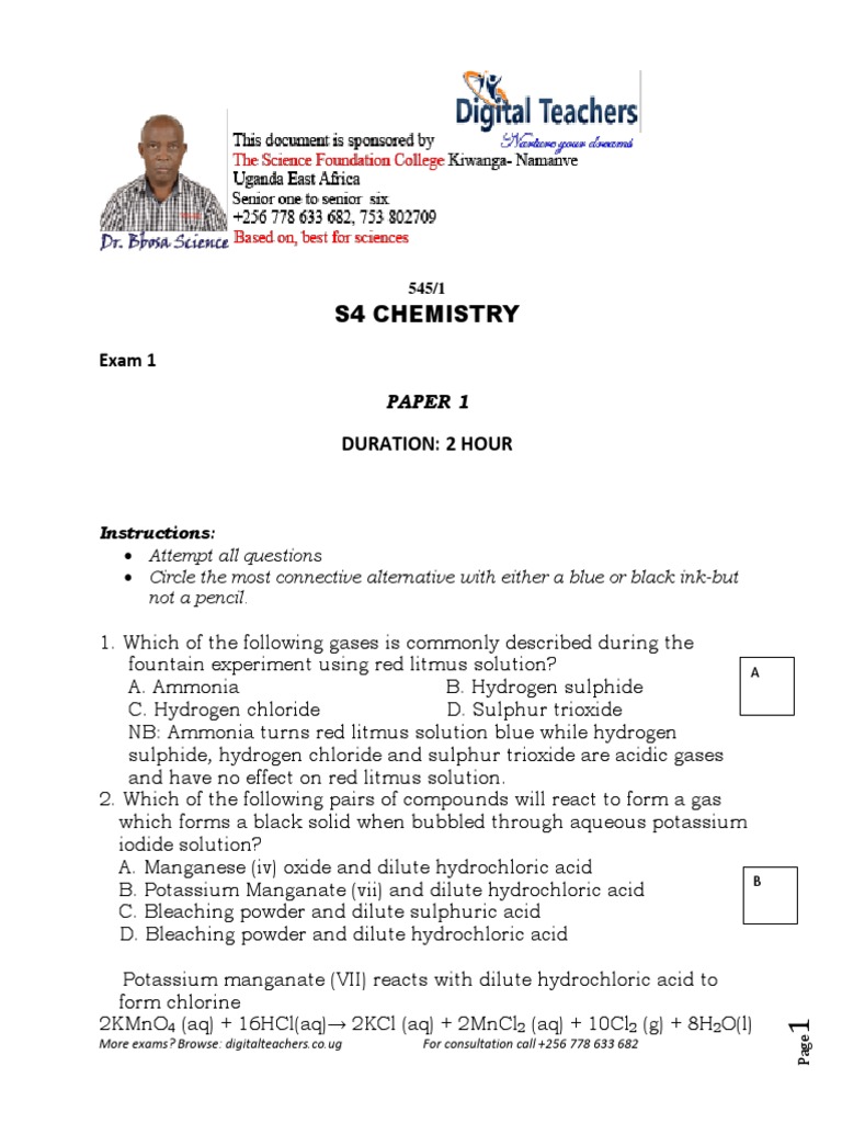 Chemistry paper 1 form 3 term 1 exam 2020 - CHEMISTRY PAPER 1 Compiled ...