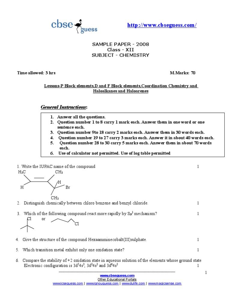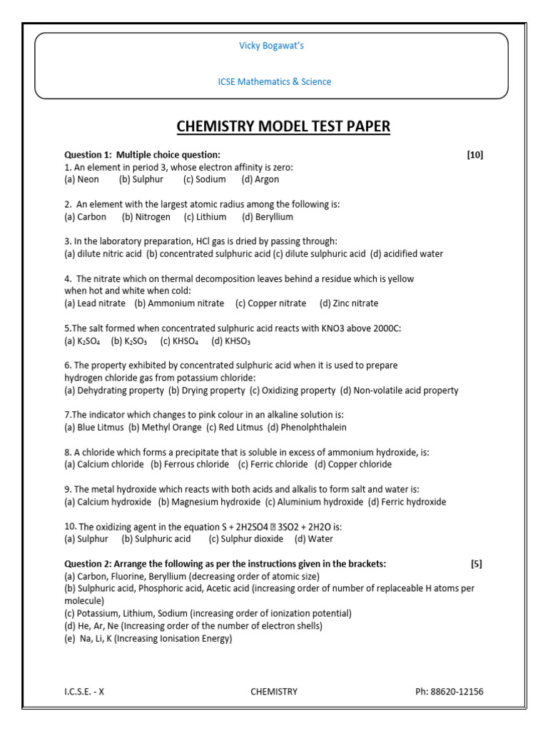 The ULTIMATE Sample Paper for CHEMISTRY examinations including all the ...